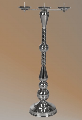 Svícen L29S výška92cm Katalogové označení L29S vyrobeno z mosazi s chromovou povrchovou úpravou zajištěno speciálním lakem vysoká jakost zpracování stabilní konstrukce možnost výroby svícnu dle návrhu klienta výška 92 cm Cena 8258,- kč bez DPH